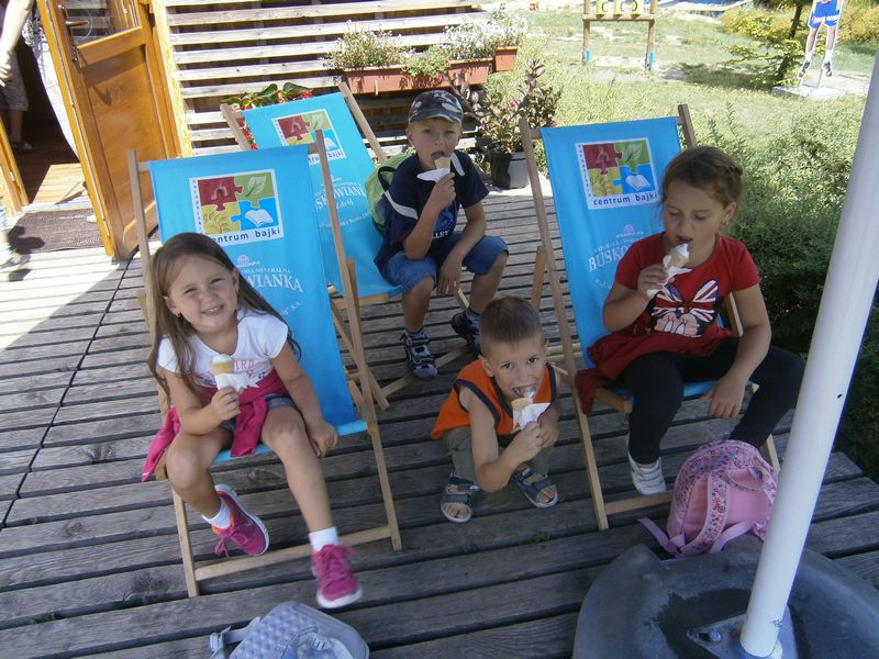 W poniedziałek odwiedziliśmy słynnego Koziołka Matołka w Pacanowie. Zwiedzaliśmy bajkowy świat w Europejskim Centrum Bajki, gdzie elfy opowiadały historie tak dobrze nam znane. Widzieliśmy na własne oczy zgubiony przez Kopciuszka pantofelek, a nawet ziarnko grochu ze słynnej bajki o księżniczce, która przez owo ziarnko za nic nie mogła się wyspać. Bawiliśmy się również w pobliskim ogrodzie i zajadaliśmy pyszne lody włoskie.