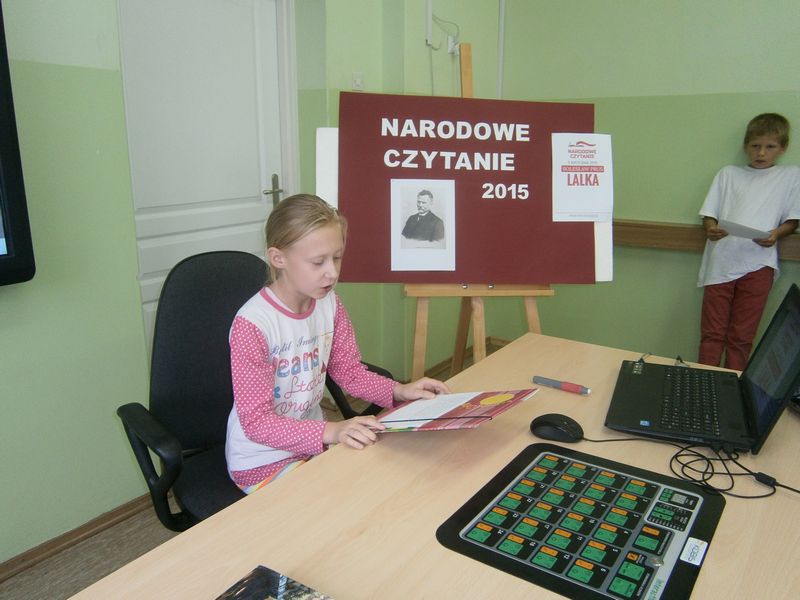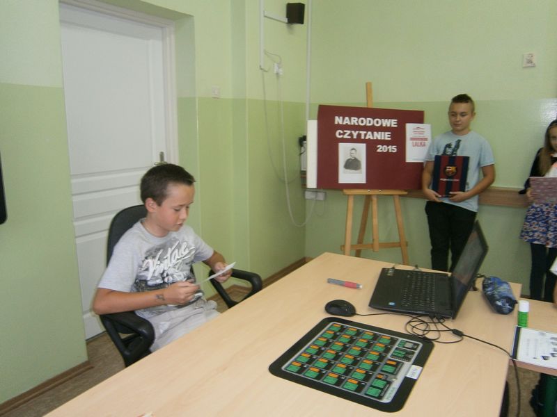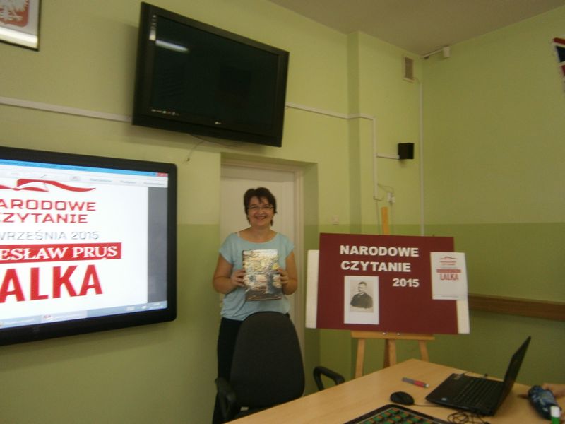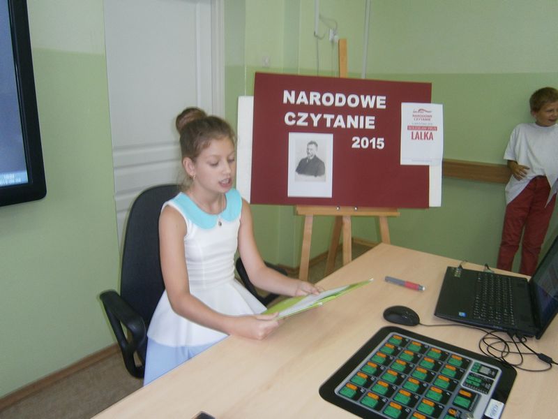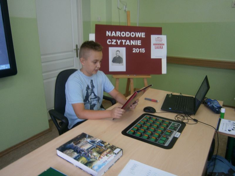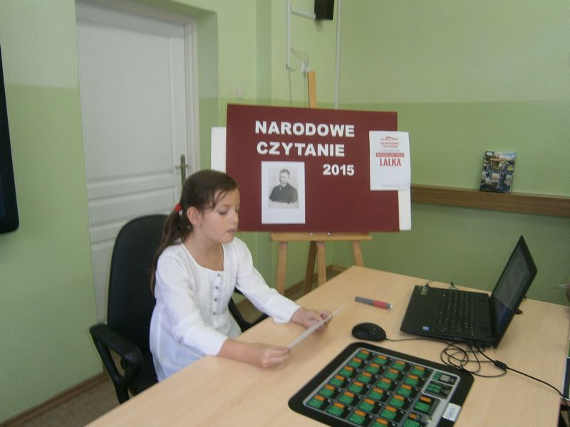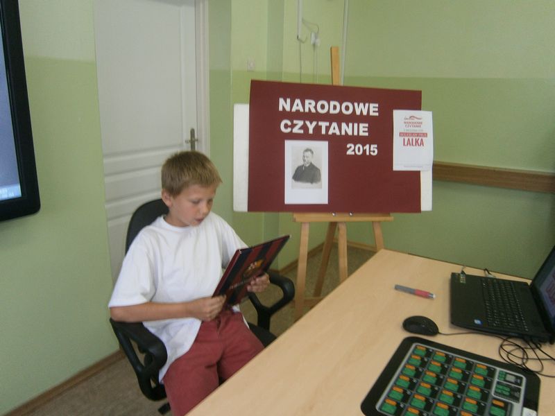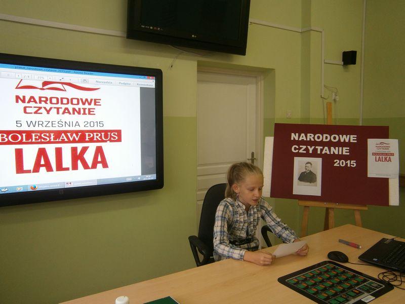 Narodowe Czytanie to zainicjowana w 2012 roku przez ówczesnego prezydenta Bronisława Komorowskiego ogólnopolska akcja publicznej lektury największych polskich dzieł literackich. Podstawowym celem przedsięwzięcia jest popularyzacja czytelnictwa, zwrócenie uwagi na potrzebę dbałości o polszczyznę oraz wzmocnienie poczucia wspólnej tożsamości. W 2012 roku czytano Pana Tadeusza Adama Mickiewicza, w 2013 - dzieła Aleksandra Fredry, zaś u ubiegłym roku Trylogię Henryka Sienkiewicza. W tym roku oddano się lekturze fragmentów „Lalki" Bolesława Prusa. Do akcji przyłączyli się również uczniowie naszej szkoły.