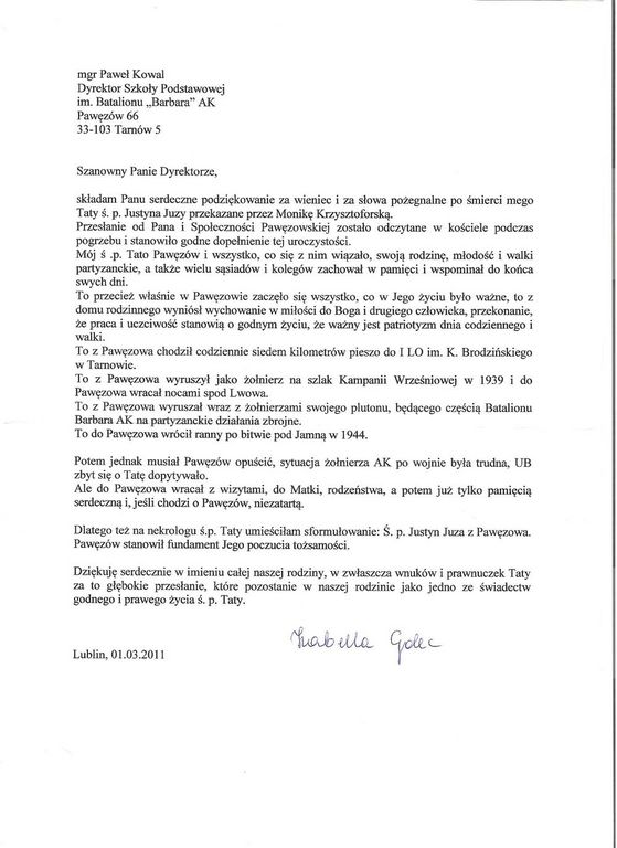 słowa dotyczą również Ciebie czcigodny nasz rodaku, panie pchor. Justynie