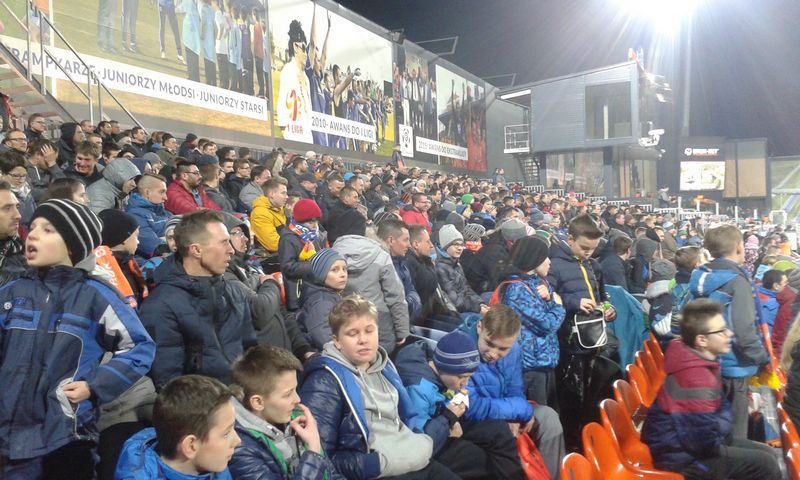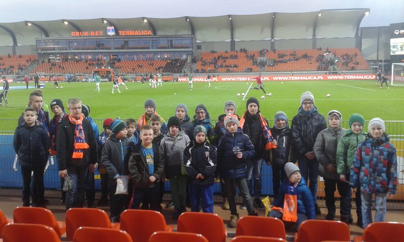 W piątek 17 marca uczniowie naszej szkoły w zorganizowanej przez Krzysztofa Kijowskiego grupie wybrali się autokarem na godzinę 18:00 na mecz ekstraklasy do Niecieczy. Na mecz wybrało się ponad 30 uczniów oraz kilku rodziców. Uczniowie bardzo przeżywali wyjazd bo niektórzy z nich po raz pierwszy mieli niecodzienną możliwość kibicowania na żywo. Chociaż temperatura powietrza była niska na stadionie panowała gorąca atmosfera. Pomimo przegranej BRUK-BETU uczniowie z uśmiechami na twarzach wrócili ok 21:00 do swoich domów.
