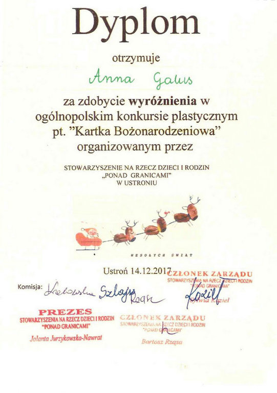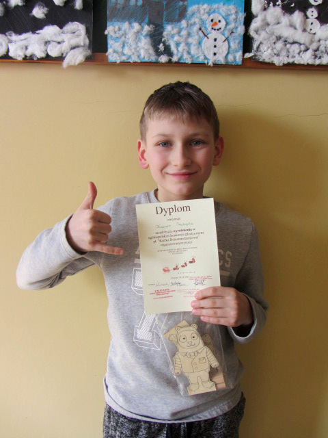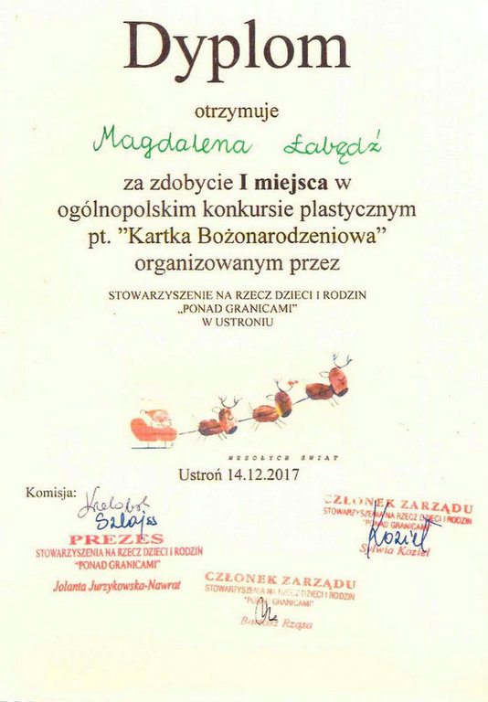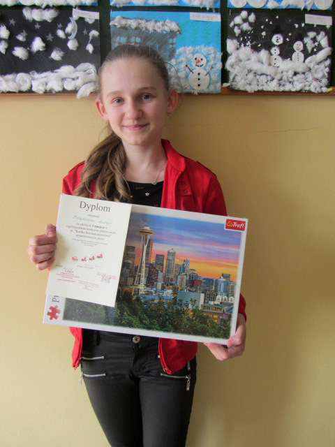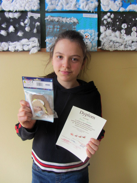 Uczennica naszej szkoły Madzia Łabędź z klasy VI zdobyła I miejsce w ogólnopolskim konkursie plastycznym pt. „Kartka Bożonarodzeniowa”.