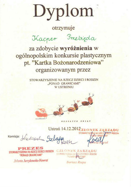 I miejsce i wyróżnienia w ogólnopolskim konkursie plastycznym pt. „Kartka Bożonarodzeniowa”