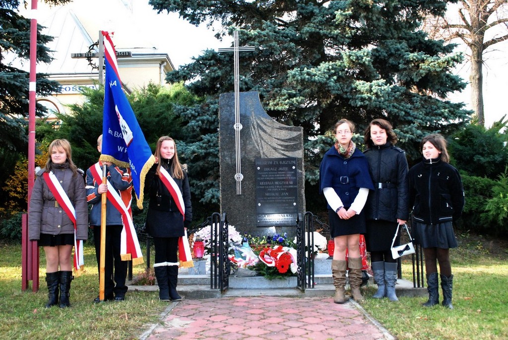 W tym samym czasie odbywały się gminne uroczystości Święta Niepodległości, na których szkołę reprezentował dyrektor Piotr Kowal i nauczycielka p. Anna Rzeszótko.
