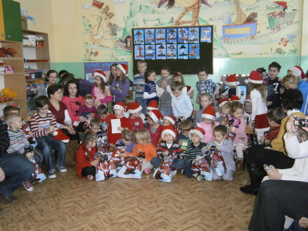 Okazało się, że wszyscy byli grzeczni i dostali prezenty. Przyjaciel szkoły Pan Władysław Wzorek odwiedził szkołę i wręczył dzieciom dużą paczkę łakoci.