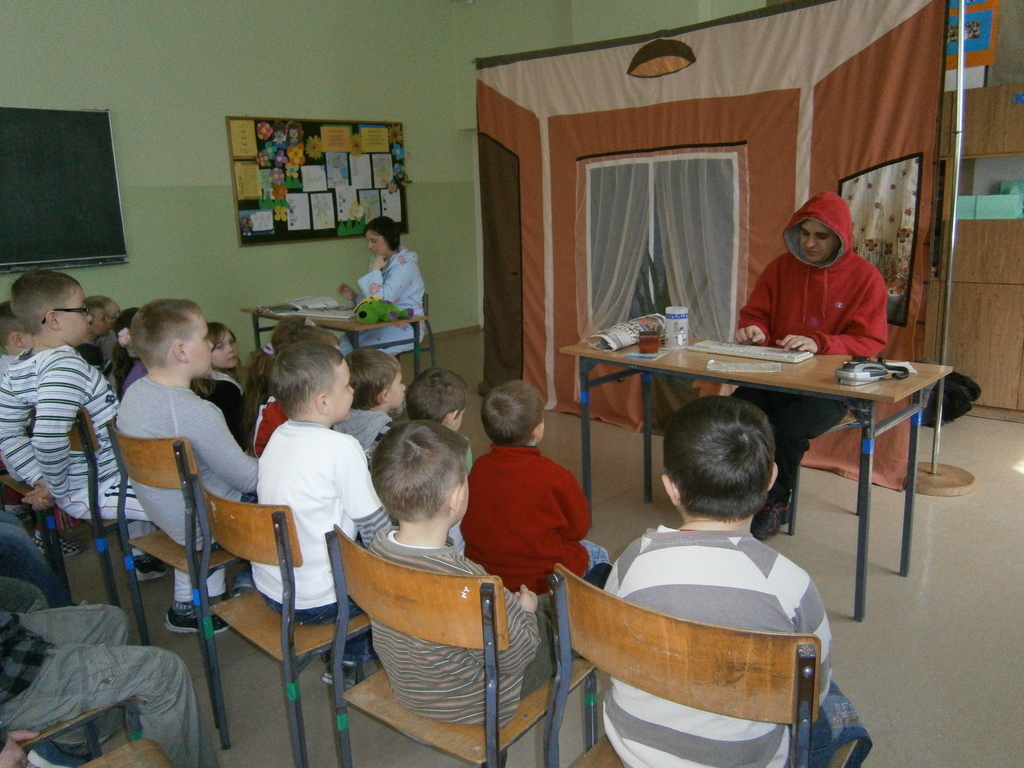 W dniu dzisiejszym uczniowie szkoły w Pawęzowie uczestniczyli w tearzyku profilaktycznym "Uwaga na Intermet". Artyści w inscenizacji przedstawili realne zagrożenia wynikające z zawierania znajomosci przez Internet. Wskazali skutki bezmyślnego podawania swoich danych osobowych, adresu i nr telefonu osobom zupełnie nieznanym. Całość przedstawienia ujęto w sposób dowcipny i wszystkim się bardzo podobało.