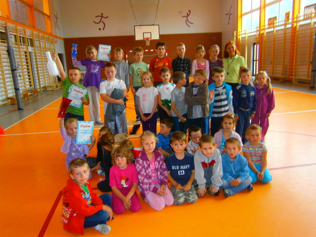 w osobach p. Jerzego Albertusiaka i p. Bogdana Ludwy wręczyli wszystkim dzieciom prezenty. Dzień był wyjątkowo bogaty w słodycze i ciastka. Nagrody, w postaci pucharów, które otrzymały poszczególne klasy i uczniowie w zawodach i konkurencjach sportowych, otrzymaliśmy od huty szkła Wrześniak.