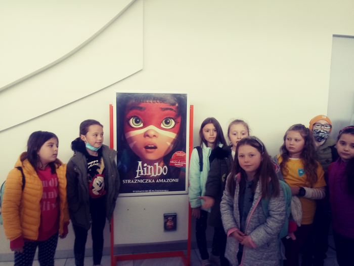 Dnia 18 października 2021r. uczniowie klas I-III wybrali się na wycieczkę do Kina „MILLENNIUM” w Centrum Sztuki Mościce na animowany film pt. „Ainbo- strażniczka Amazonii”.