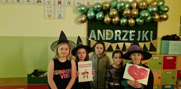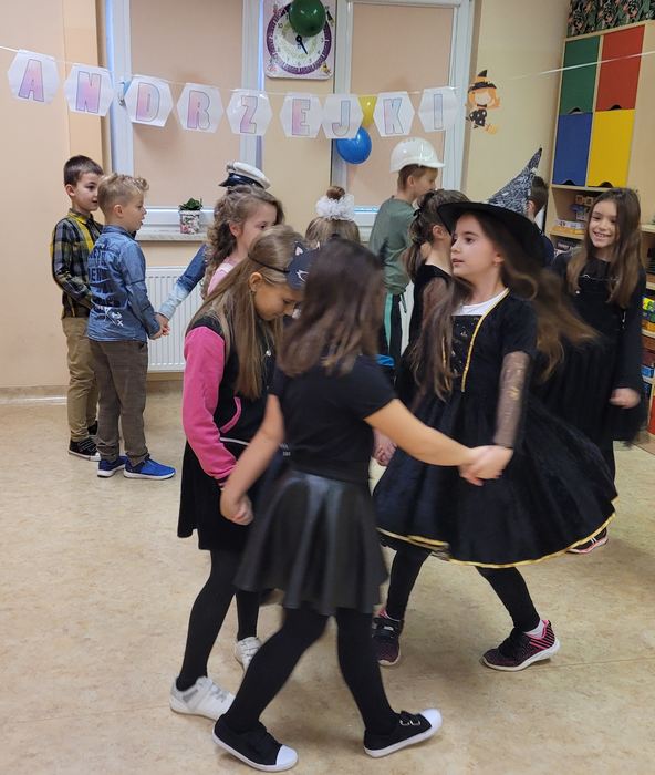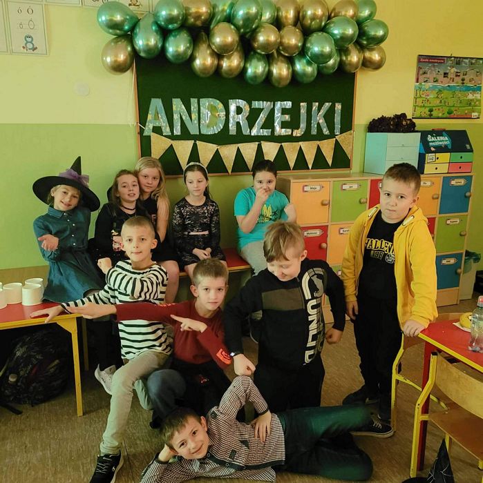 W naszej szkole w dniach 24-25.11.2021r. uczniowie klas I- III w niecodziennych strojach, z przejęciem i zaangażowaniem przybyli do swoich sal lekcyjnych, aby uczestniczyć w długo oczekiwanej zabawie andrzejkowej. Tradycyjne andrzejki miały na celu: poznanie ludowych zwyczajów i obrzędów związanych z tym świętem, pogłębić i pielęgnować wartości społeczne, estetyczne w kontaktach z rówieśnikami. Dzieci tańczyły, bawiły się wspólnie przy dźwiękach skocznej muzyki z zachowaniem reżimu sanitarnego. Wszystkim dopisywał dobry humor. Nauczycielki zorganizowały ciekawe konkursy sprawnościowe, zwinnościowe z nagrodami, natomiast rodzice przygotowali poczęstunek. Wróżby pozwoliły oderwać się od rzeczywistości, przenieść w świat marzeń i fantazji. Człowiek często rozmyśla o tym, co go w życiu spotka, planuje i marzy. Wszystkie nasze marzenia są ważne, ale najważniejsze jest to, aby towarzyszyło nam zdrowie i szczęście.