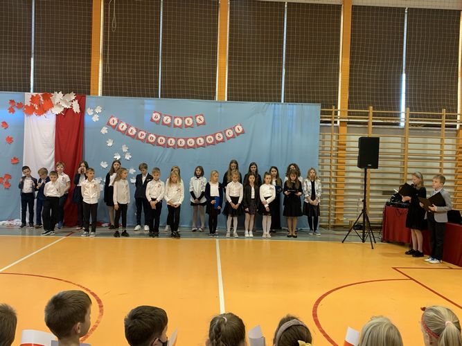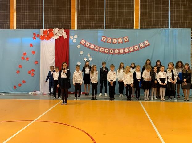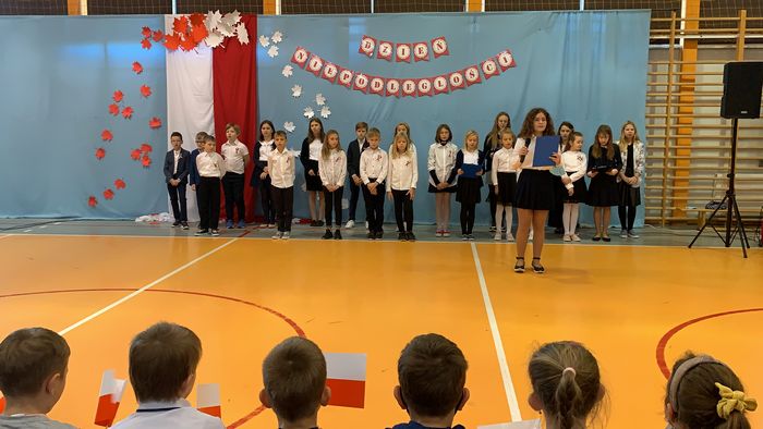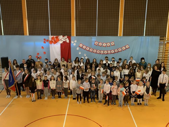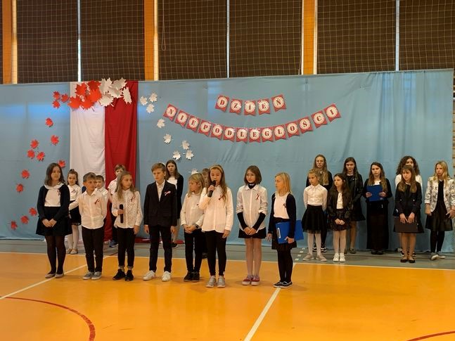 Dnia 10 listopada w naszej szkole obchodziliśmy Święto Odzyskania Niepodległości. Z tej okazji podczas akademii uroczyście odśpiewaliśmy Hymn Polski tym samym biorąc udział w kolejnej edycji akcji "Szkoła do Hymnu". Nasi najmłodsi patrioci z Oddziału Przedszkolnego również przyłączyli się do akcji.