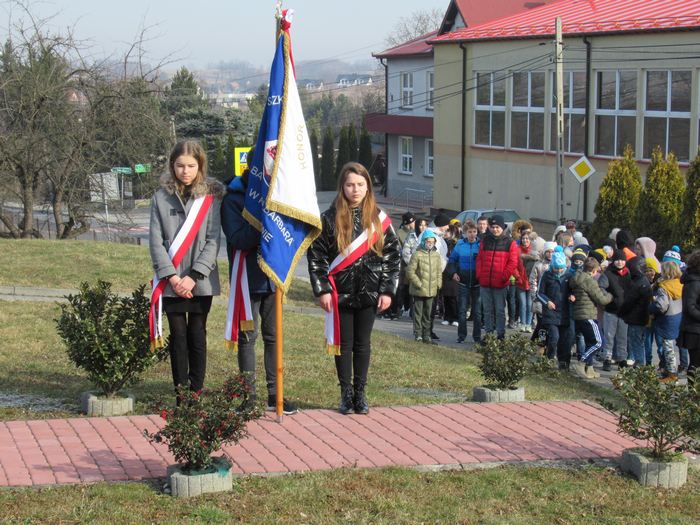 Uczniowie naszej szkoły wraz z przedstawicielami społeczeństwa lokalnego, ks. Proboszczem Tadeuszem Wszołkiem, sołtys wsi p. Małgorzatą Niedojadło, prezesem OSP Grzegorzem Olechny, prezesem Stowarzyszenia Pawęzów Razem Jerzym Albertusiakiem złożyli wiązankę kwiatów i zapalili znicze pod Pomnikiem poległych za ojczyznę pawęzowian, oddając cześć Żołnierzom Wyklętym.