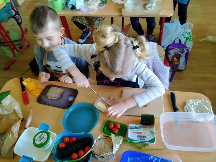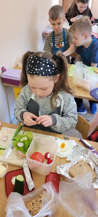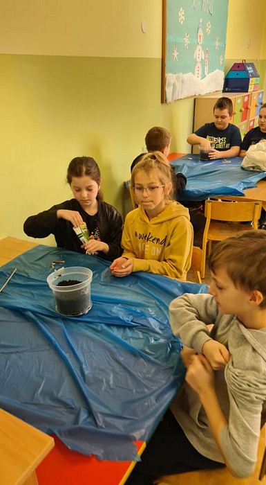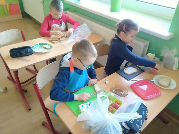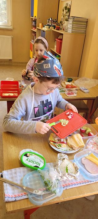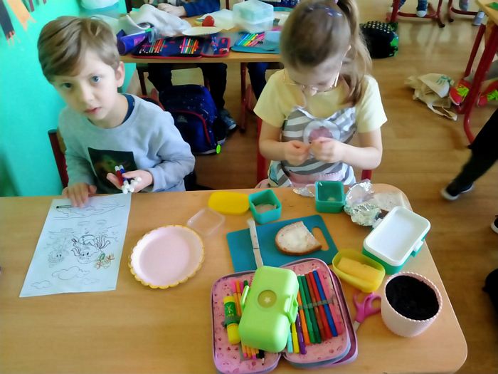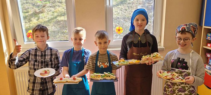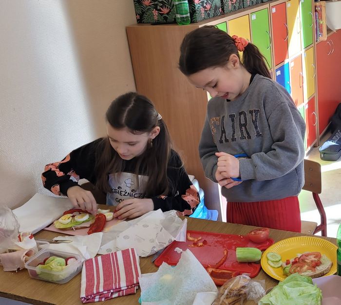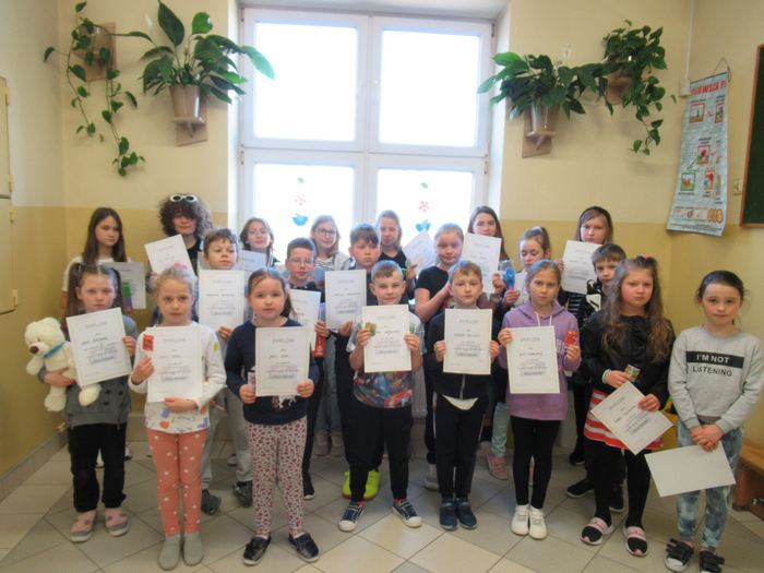 W poniedziałek 21 marca 2022r. w naszej szkole obchodzony był Pierwszy Dzień Wiosny połączony z Dniem Zdrowego Odżywiania. Uczniowie klas I-III przywitali wesołą porę roku przygotowując zdrowe, kolorowe i oryginalne kanapki. Z apetytem skonsumowali samodzielnie zrobione II śniadanie. Posiali i zasadzili nowalijki pełne witamin, które wykorzystają do przyozdobienia posiłków. Dzieci oglądały filmy edukacyjne pt.: „Bociany” i „Zwiastuny wiosny”. Następnie wykonały z kolorowego papieru piękne bociany, portret Pani Wiosny oraz tradycyjną kolorową kukłę - Marzannę. Wybrały się na spacer z „Dzienniczkami Poszukiwacza Wiosny”. Uczniowie w tym dniu założyli dwie różne skarpetki, które są symbolem jedności z osobami z Zespołem Downa. Brały udział w szkolnym konkursie „MAM TALENT”, podczas którego mogły zaprezentować swoje umiejętności i pasje. Jury, złożone z uczniów, wyłoniło najlepsze show. Każdemu uczestnikowi został wręczony dyplom i upominek. Liczymy na równie liczny udział oraz nowe pomysły w przyszłym roku.