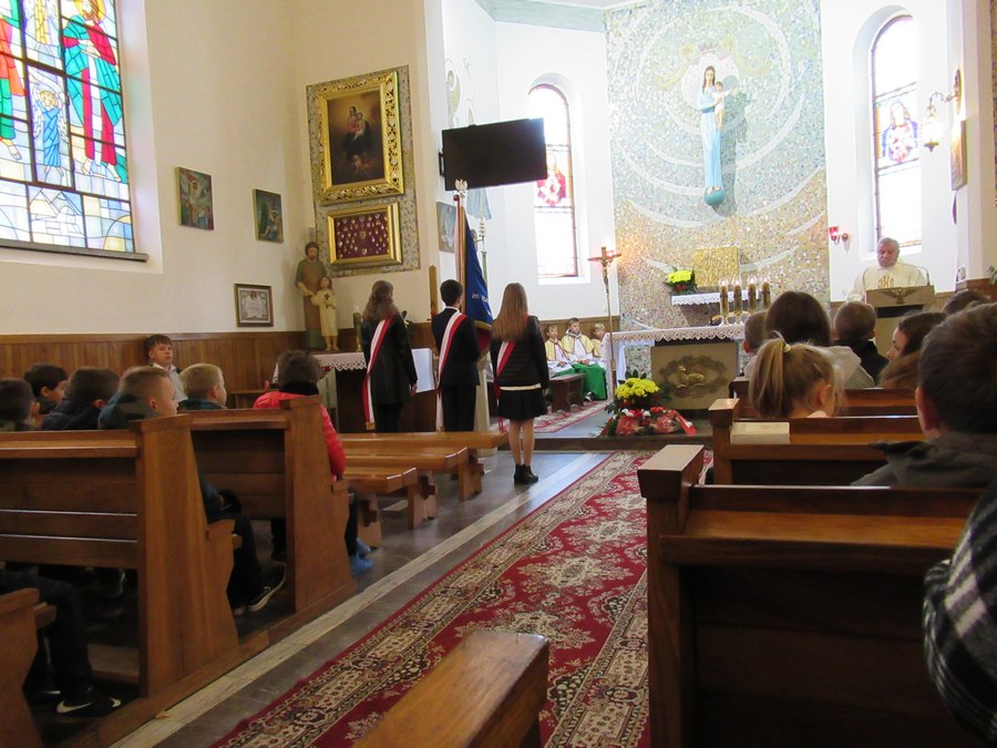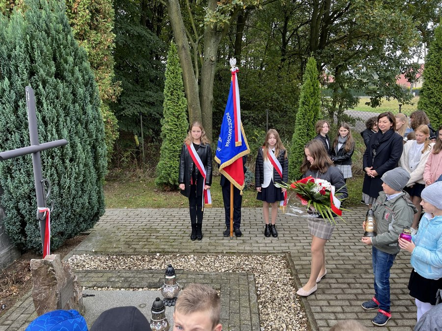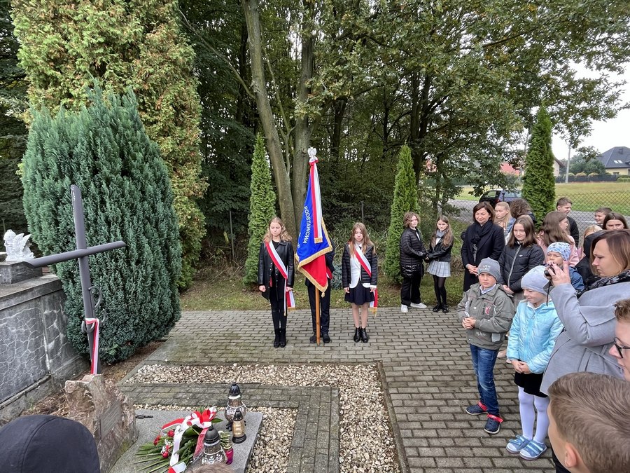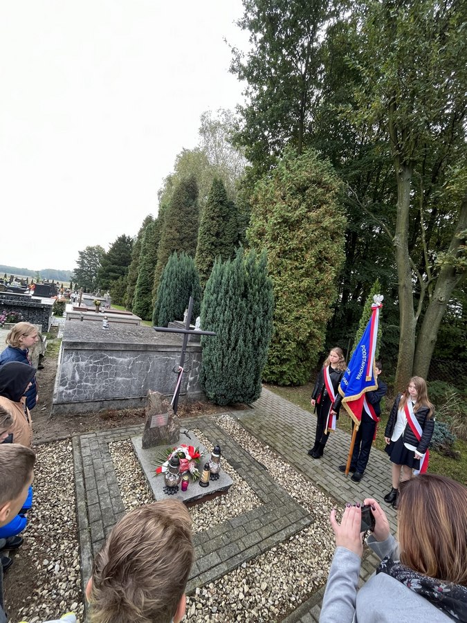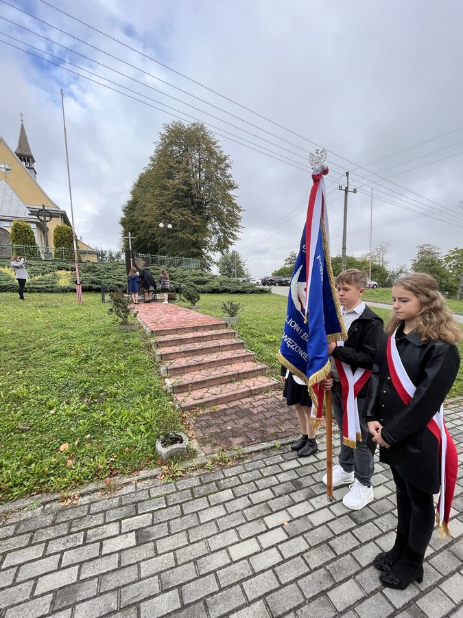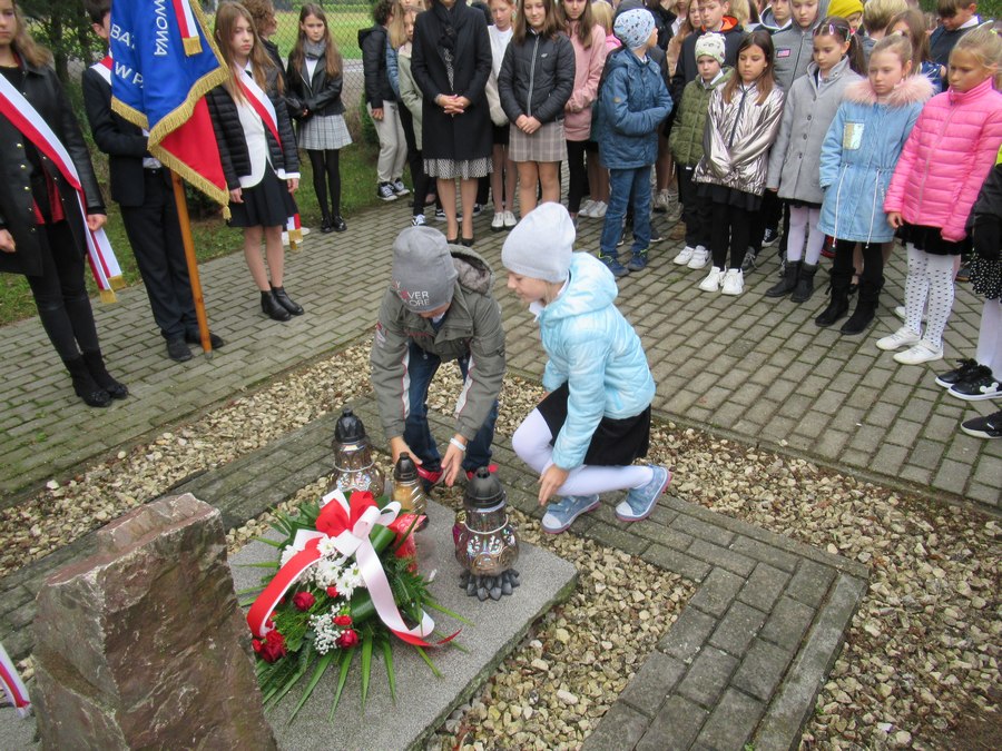 23 września 2022 r. obchodziliśmy uroczyście Święto Patrona Szkoły. O godzinie 8.00 wzięliśmy udział we Mszy św. w intencji poległych partyzantów Batalionu „Barbara” Armii Krajowej, sprawowanej przez księdza proboszcza Tadeusza Wszołka. Po niej złożyliśmy wiązankę kwiatów przy Pomniku poległych za ojczyznę pawęzowian, a potem udaliśmy się na parafialny cmentarz, by złożyć kwiaty i zapalić znicze przy grobie członków batalionu – Mieczysława Kiełbasy ps. „Kanarek” i NN ps. „Czachara”.