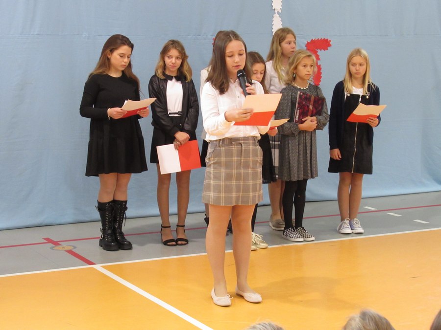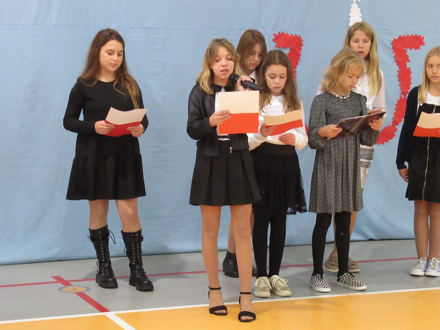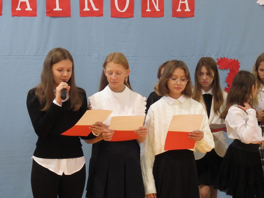 Akademię przygotowali uczniowie klasy czwartej i piatej pod opieką p. Marii Stono i p. Jolanty Polczyk oraz chórek pod opieką p. Izabelli Ilcewicz. W akademii wykorzystano sprzęt nagłaśniający, który został zakupiony w ramach rządowego programu Laboratoria Przyszłości.