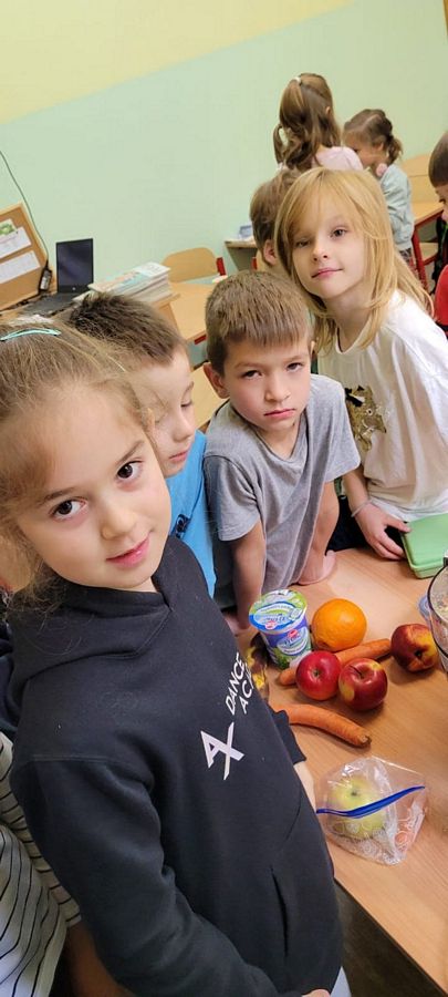 Uczniowie klasy pierwszej w czasie lekcji na temat zdrowej żywności mieli okazję uatrakcyjnić swoje zajęcia dzięki sprzętowi, który szkoła otrzymała w ramach programu Laboratoria Przyszłości.