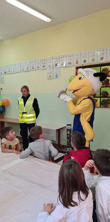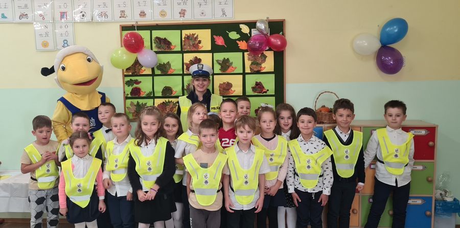 13 października 2022 r. uczniowie klasy pierwszej w ramach akcji „BEZPIECZNA DROGA DO SZKOŁY Z MRÓWKĄ” uczestniczyli w spotkaniu z przedstawicielami Policji oraz wesołą maskotką Mrówką.