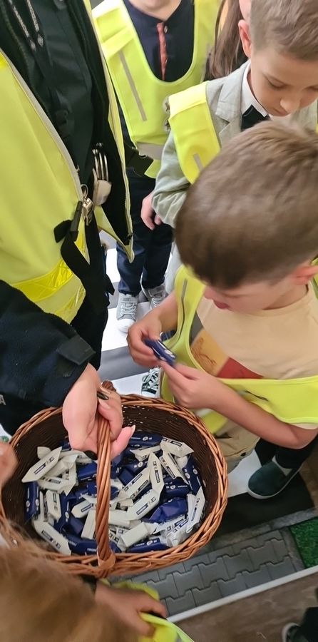 Na zakończenie spotkania każdy z uczestników otrzymał od Mrówki kamizelkę odblaskową oraz słodką nagrodę.