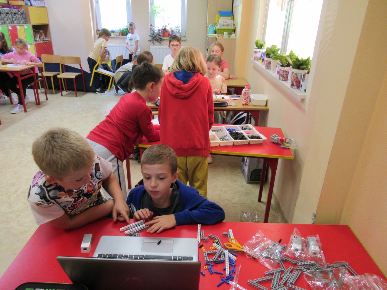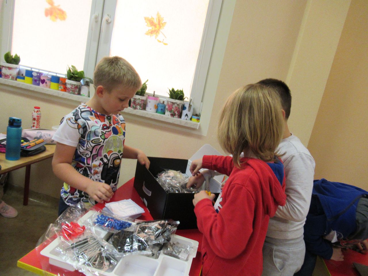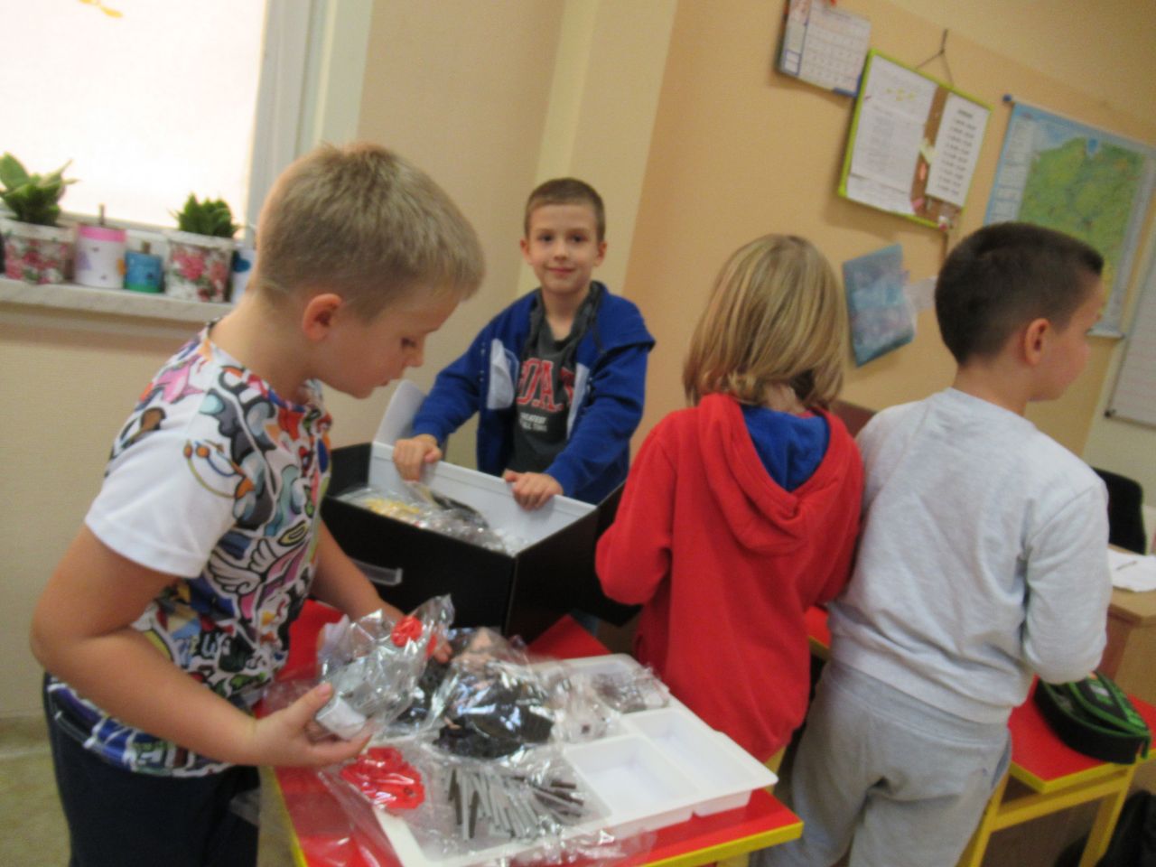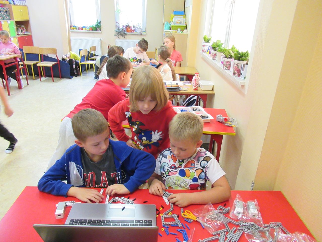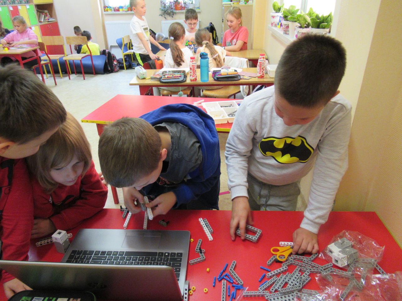 Niektórzy uczniowie podczas zajęć na świetlicy próbowali zbudować robota Crawler Bot za pomocą klocków Abilix Krypton 4 v2, które otrzymała szkoła w ramach programu Laboratoria Przyszłości.
