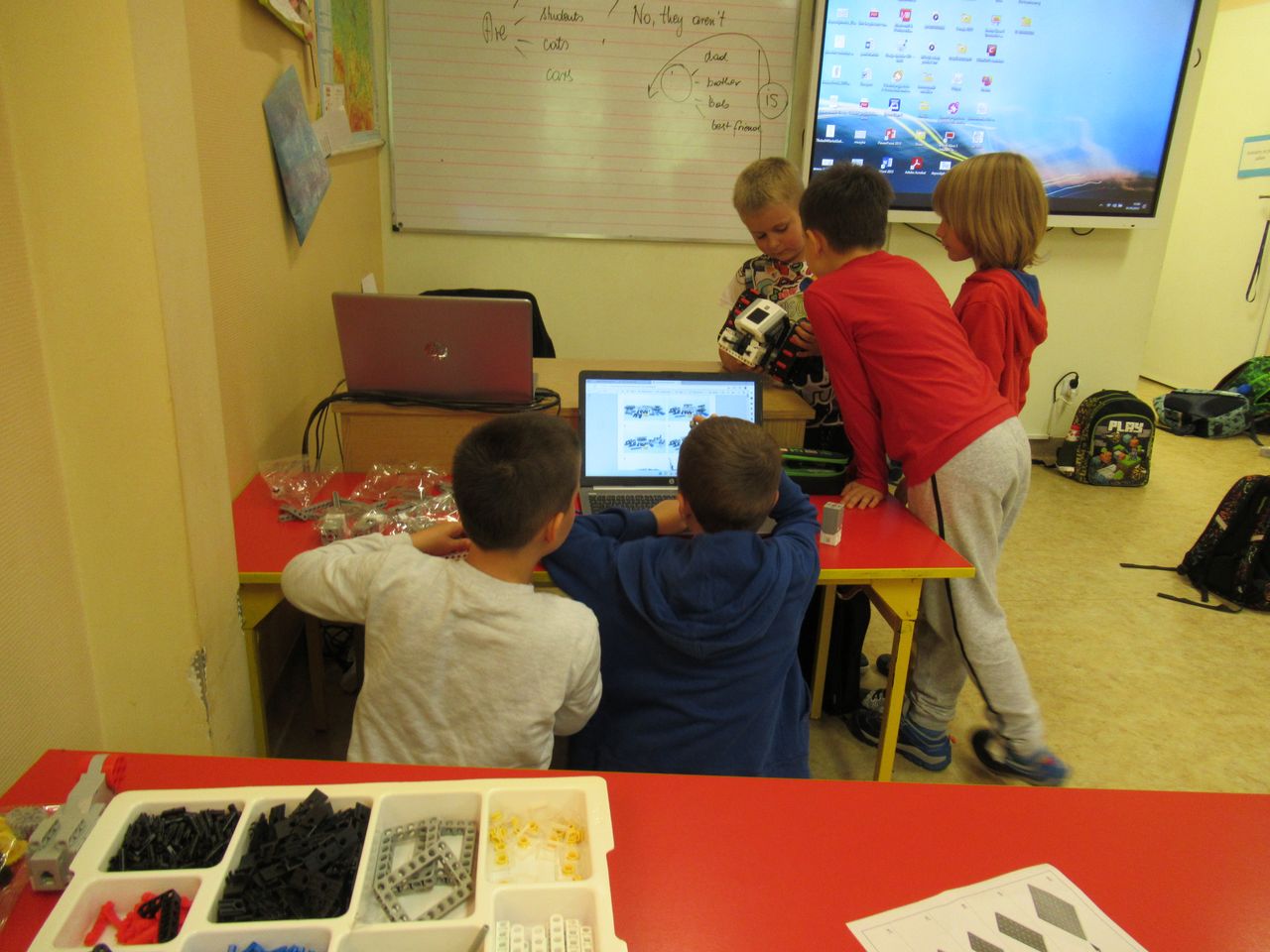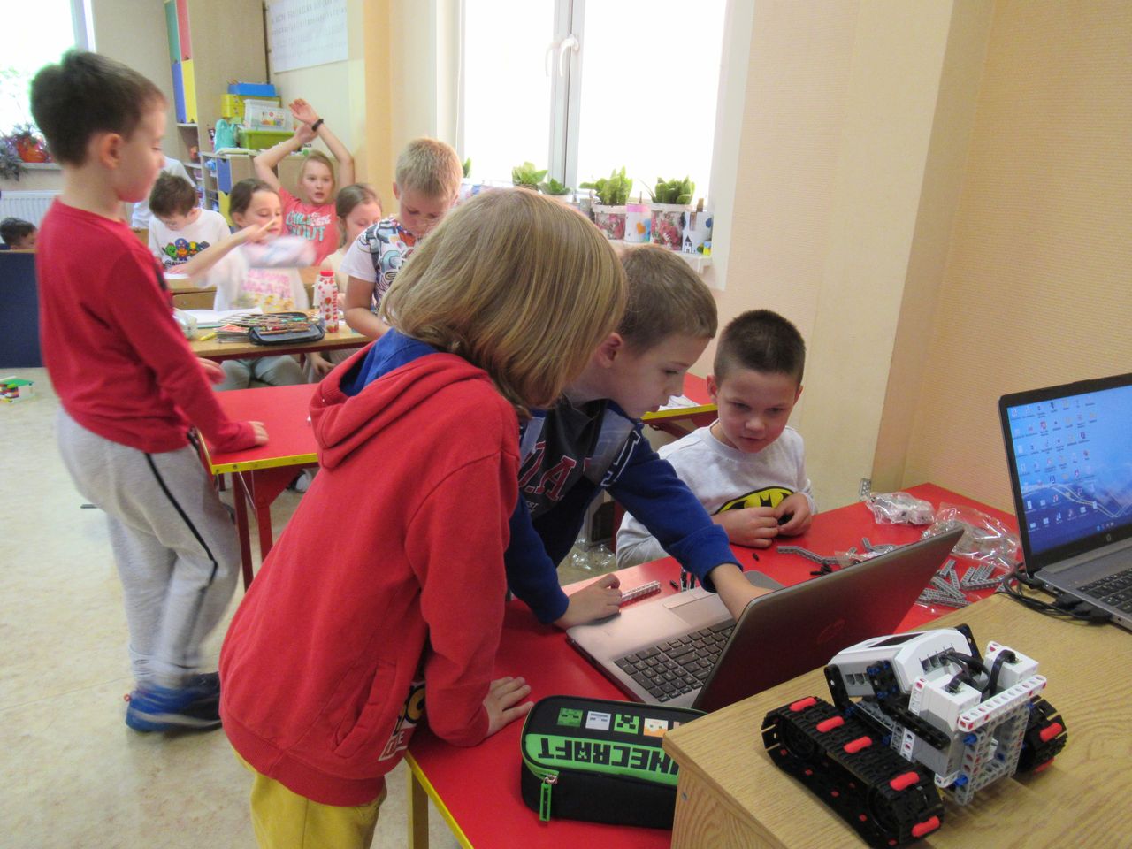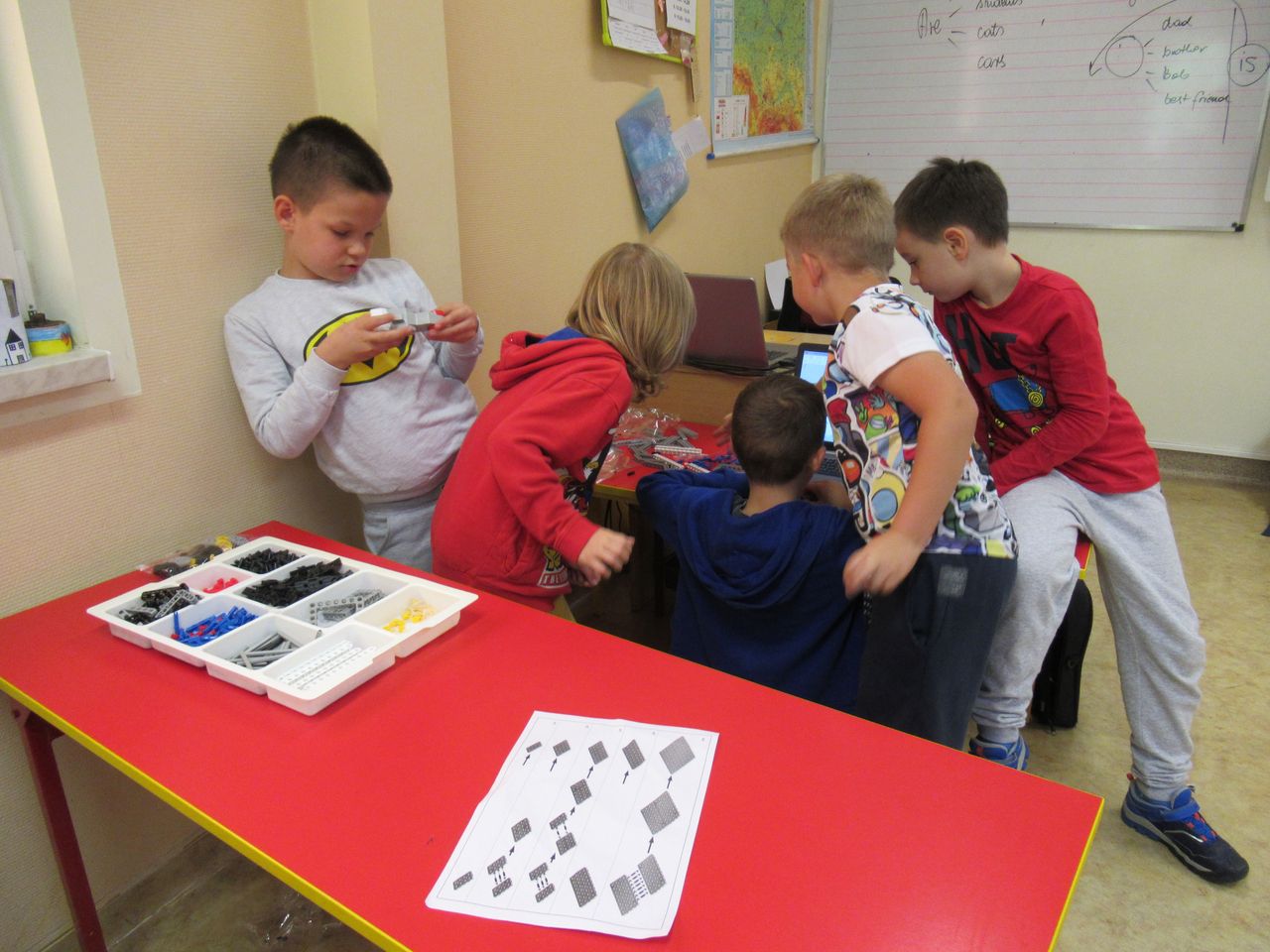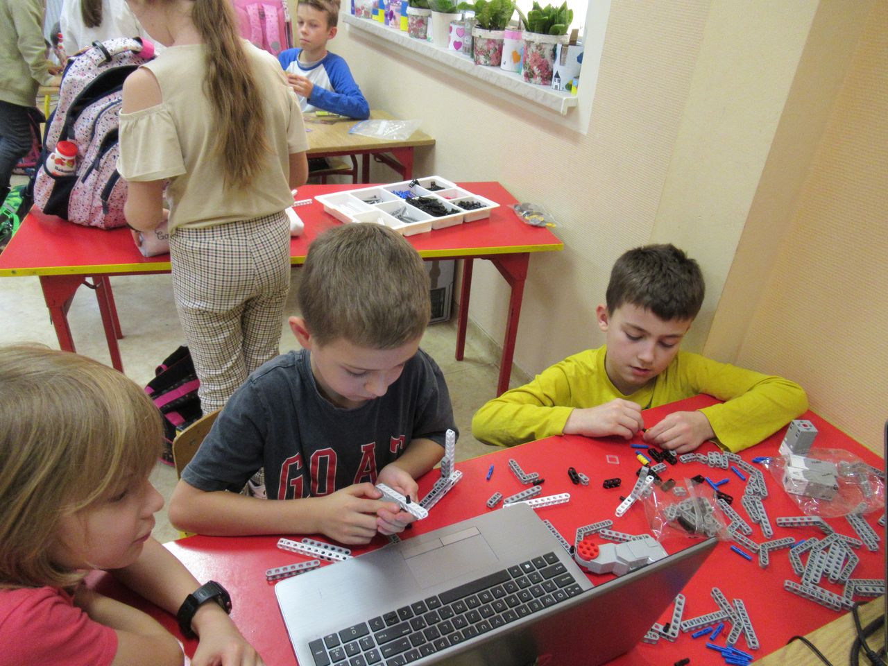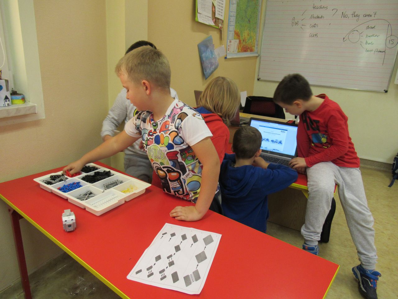 Niektórzy uczniowie podczas zajęć na świetlicy próbowali zbudować robota Crawler Bot za pomocą klocków Abilix Krypton 4 v2, które otrzymała szkoła w ramach programu Laboratoria Przyszłości.