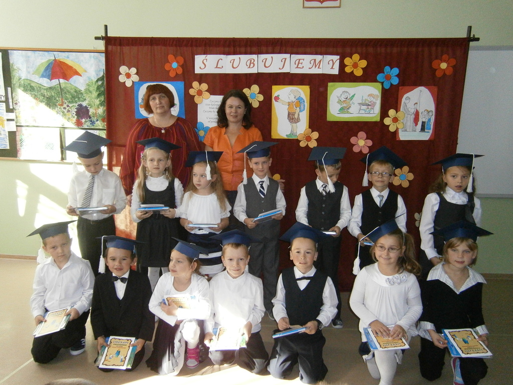 Pani Jolanta Polczyk - wychowawczyni naszych pierwszaków : Ani Galus, Sylwii Grabczyńskiej, Kamila Kopeć, Krzysia Kurasiewicza, Julii Lipińskiej, Madzi Łabędź, Miłosza Mozgowca, Karola Oleksego, Karoliny Prusinowskiej, Mateusza Solaka, Tomasza Tokarskiego, Wiktorii Wałaszek, Patryka Witka i Mateusza Zaparta; przygotowała z uczniami część artystyczną, w której popisali się swoimi umiejętnościami i wiedzą. Było to naprawdę imponujące i zrobiło wrażenie na wszystkich widzach.