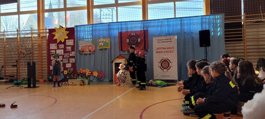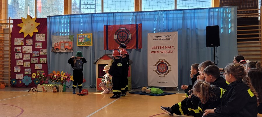 Dnia 15 listopada 2022r. odbyło się uroczyste podsumowanie projektu „Jestem Mały, Wiem Więcej”, którego organizatorem był Oddział Wojewódzki Związku Ochotniczych Straży Pożarnych RP woj. małopolskiego. Projekt został zrealizowany w 9 szkołach podstawowych na terenie województwa małopolskiego. Nasza szkoła, jako jedyna w powiecie tarnowskim uczestniczyła w tym przedsięwzięciu. W projekcie wzięło udział 18 uczniów klas II-III, którzy na teoretycznych i praktycznych zajęciach poznali tajniki trudnej i odpowiedzialnej pracy strażaków. Poruszana była tematyka związana z ekologią, ochroną środowiska, udzielaniem pierwszej pomocy i odpowiednim postępowaniem podczas zagrożenia. Kształtowane były właściwe postawy obywatelskie i uwrażliwienie na bezpieczeństwo własne oraz osób poszkodowanych. Dzieci zapoznały się ze sprzętem strażackim. Każdy z uczestników otrzymał koszarowe umundurowanie. Opiekunem kursu był druh Naczelnik- Grzegorz Olechny.