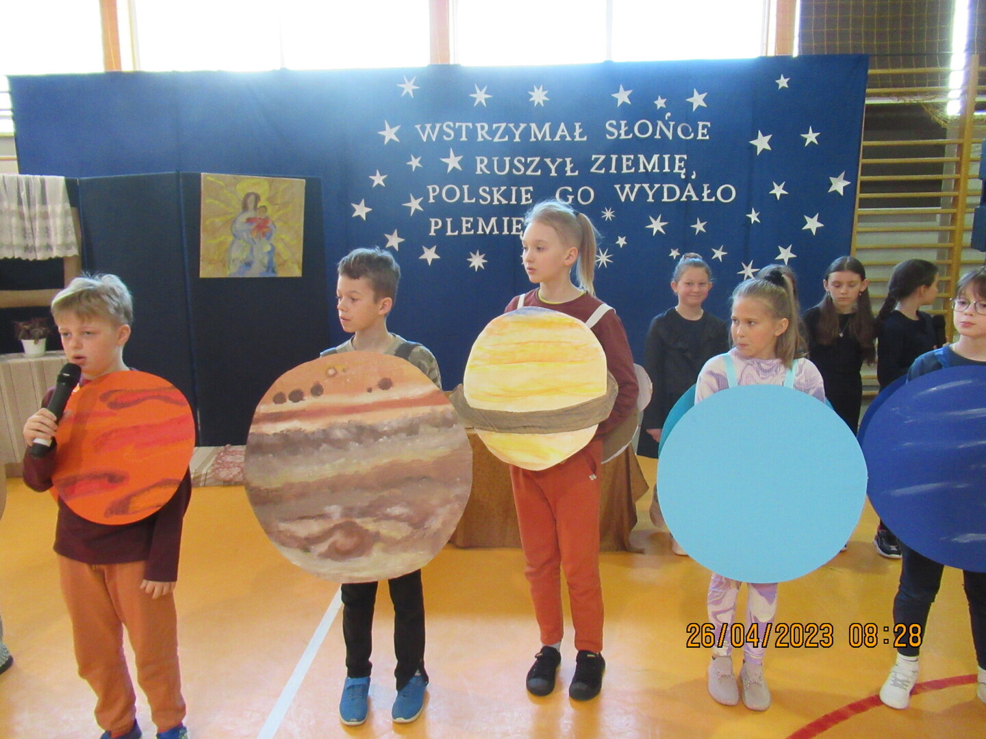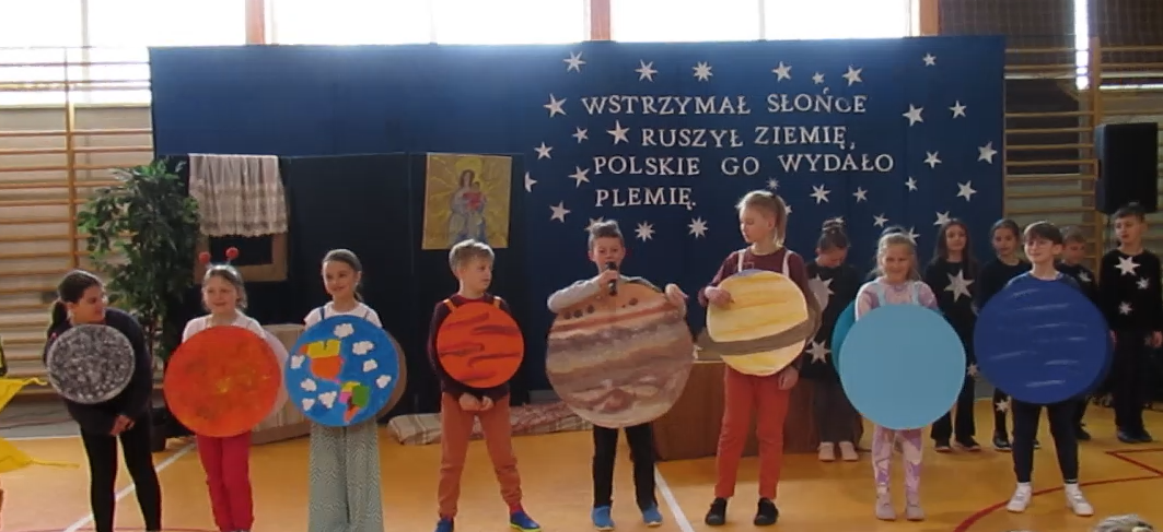 W roku poświęconym pamięci naszego wielkiego astronoma Mikołaja Kopernika, uczniowie klasy V postanowili przybliżyć społeczności szkolnej jego życiorys i osiągnięcia. Przygotowali przedstawienie, ukazując publiczności nie tylko ważne fakty z jego życia, ale również staropolską gwarę i kulturę. Z tej okazji również uczniowie klasy III przygotowali piosenkę o Układzie Słonecznym, wcielając się w rolę poszczególnych planet. Mamy nadzieję, że takie wydarzenia pomogą nam w łatwy sposób poznać zagadnienia związane z fizyką i astronomią.