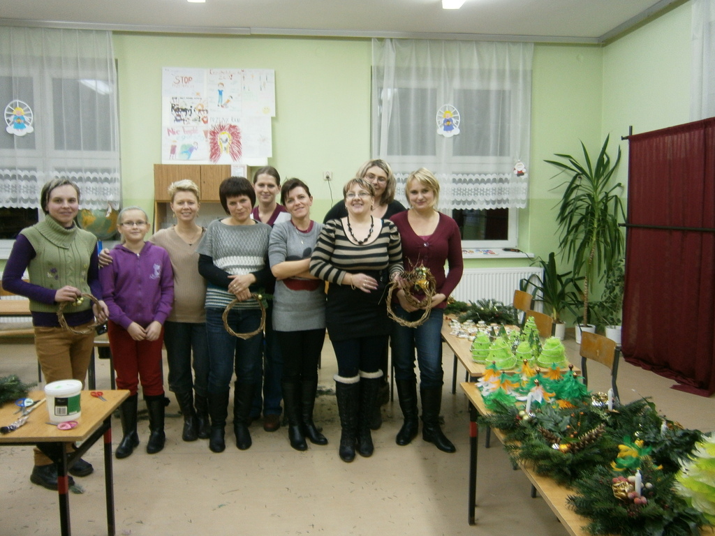 W dniu 12 grudnia, w prawdziwie zimowej i świątecznej aurze, odbyły się warsztaty wykonania ozdób świątecznych. Organizatorem była p.dyrektor szkoły Małgorzata Pietrzak, a warsztaty prowadziła z pomocą p.Agnieszki Dąbrowskiej-Wilkosz. Już najwyższy czas do powrotu tradycji samodzielnego wykonania własnych stroików świątecznych. W dobie komercjalizacji liczy się inwencja i pomysłowość, oraz czas spędzony w gronie rodziny. Uczestnicy warsztatów zapoznali się z techniką decoupage, w której wykonali ozdoby choinkowe, zrobili choinki z kartonu i piór oraz tradycyjne stroiki z jodły i naturalnych ozdób. Czas minął przyjemnie i efektywnie. Wszyscy uczestnicy zabrali swoje wyroby do domów zostawiając część na kiermasz swiąteczny.