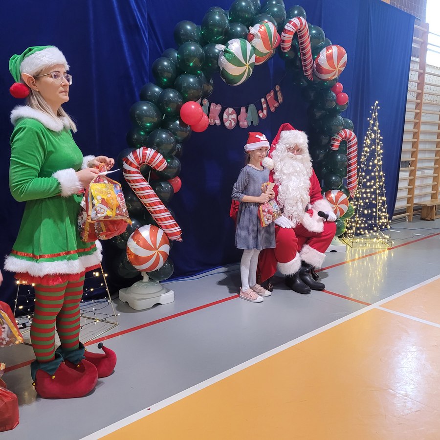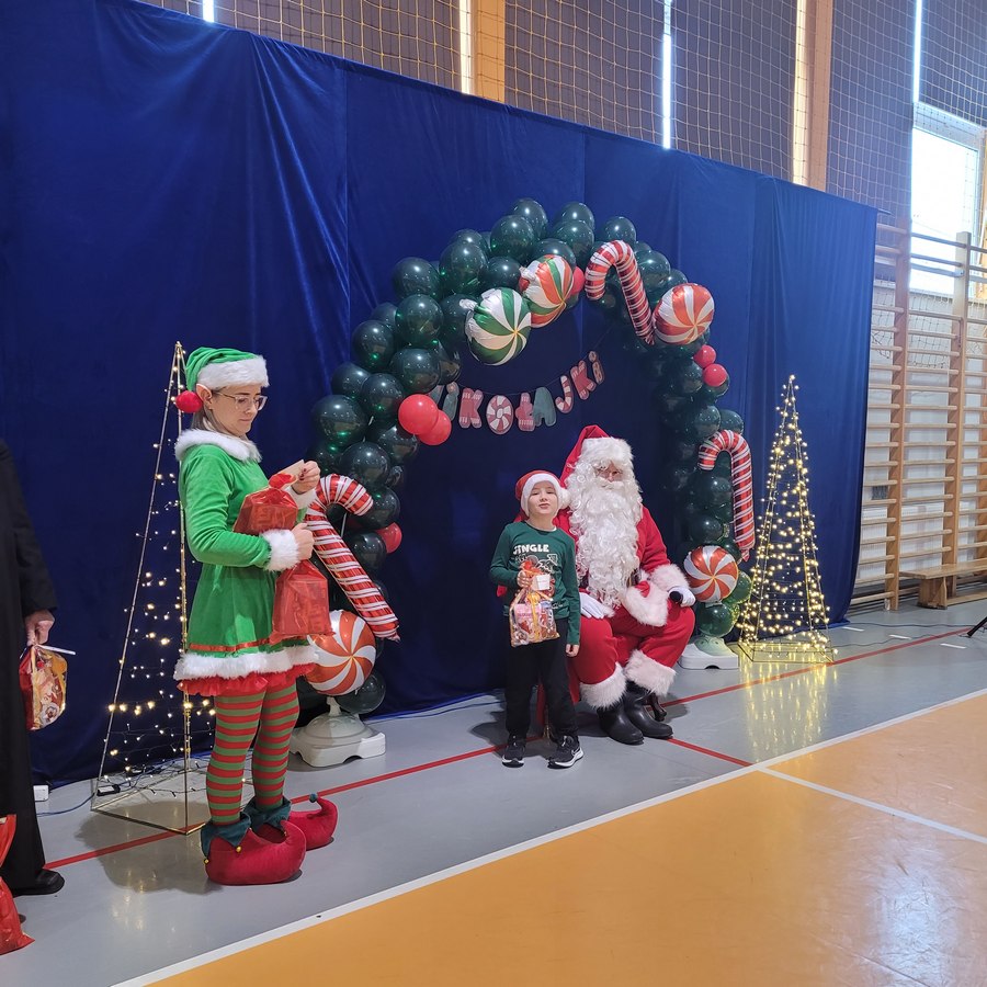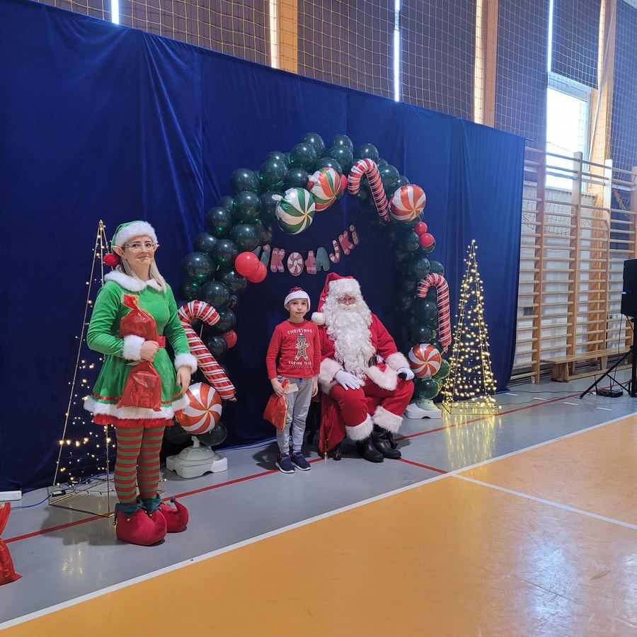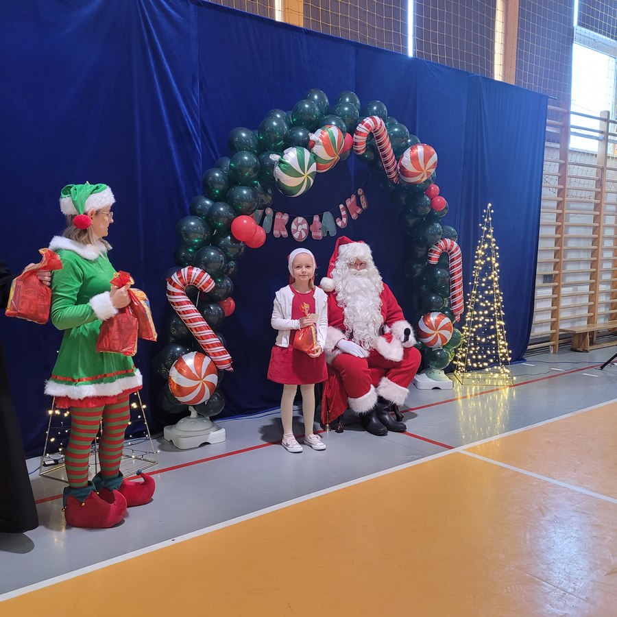 Mikołajki w szkole to jedno z najbardziej wyczekiwanych wydarzeń grudnia, zwłaszcza wśród uczniów naszej szkoły. Wyjątkowy, długo oczekiwany dzień - 6 grudnia wypełniony został śmiechem i wspólną zabawą. Dzięki św. Mikołajowi atmosfera w szkole stała się cieplejsza i magiczna. Zacnemu gościowi towarzyszył sympatyczny pomocnik- elf. Z radością dzieci powitały przybyłych gości i zaśpiewały piosenkę o św. Mikołaju. Za dobre zachowanie młodsi uczniowie otrzymali: kolorowe zabawki, klocki , owoce i słodycze. Spotkanie przebiegało w pogodnym i przyjaznym nastroju. Ten dzień na długo zostanie w pamięci każdego , i tego młodszego i starszego obdarowanego.
