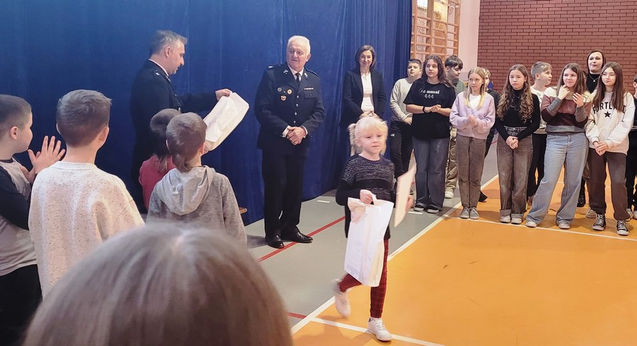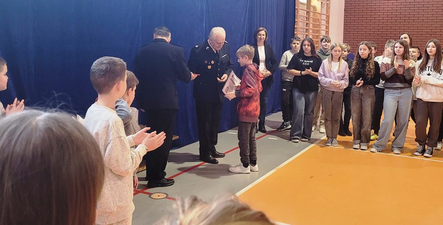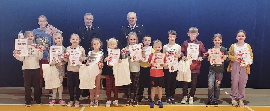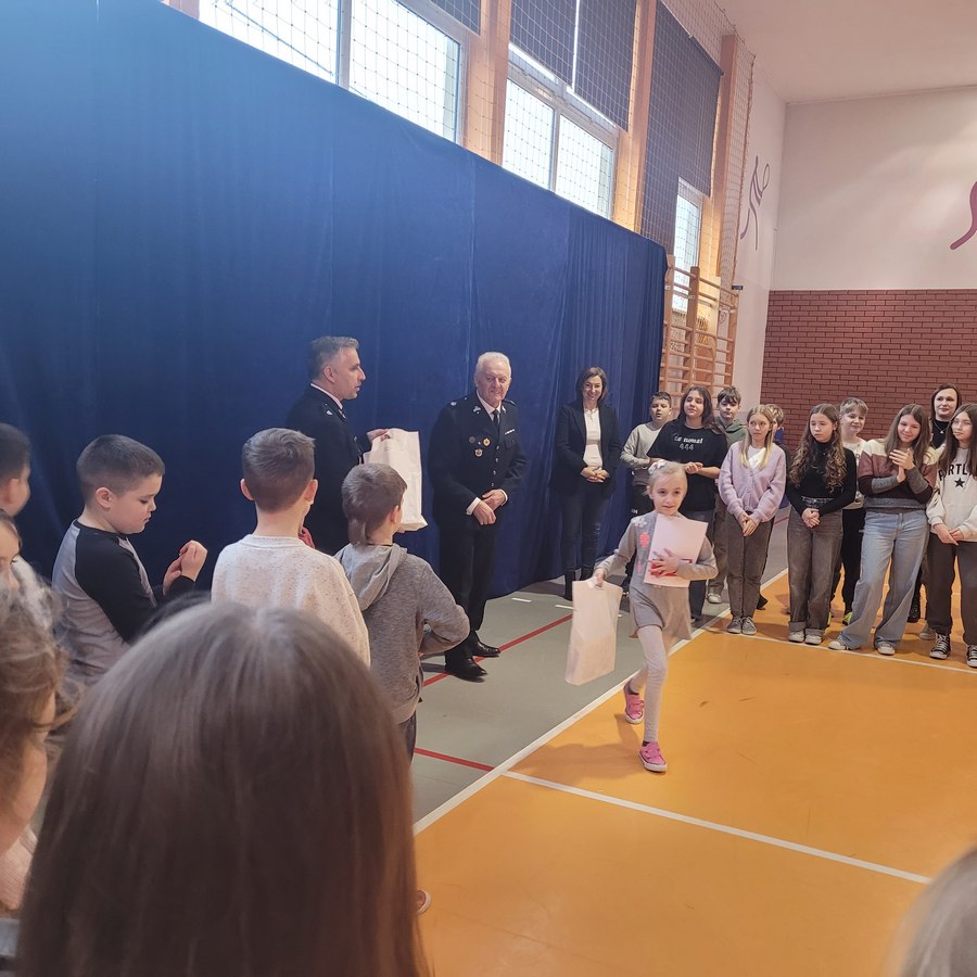 Dnia 5 lutego 2024 r.w naszej szkole odbyło uroczyste wręczenie nagród laureatom i wyróżnionym uczniom, którzy uczestniczyli w Gminnym Strażackim Konkursie Plastycznym. Przybyli goście: pan Józef Schab – Prezes i pan Grzegorz Olechny – Naczelnik OSP w Pawęzowie obdarowali dzieci upominkami i pamiątkowymi dyplomami, zapraszając również do liczniejszego udziału w konkursie plastycznym w następnych latach.