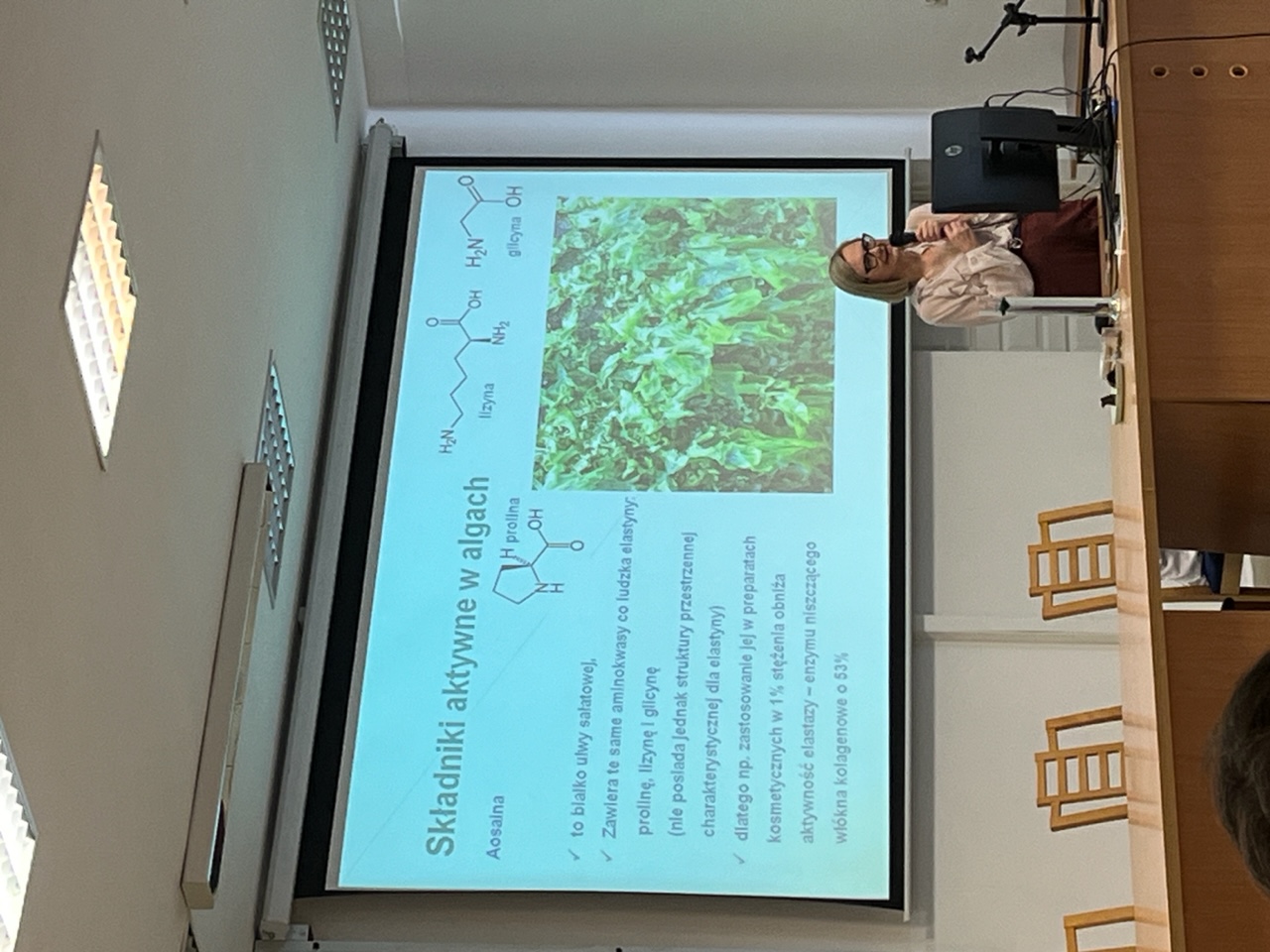 5 kwietnia uczniowie klas 7 i 8 po raz kolejny uczestniczyli w TARNOWSKIM PIĄTKU CHEMICZNYM - wykładzie popularno- naukowym o chemii adresowanym do uczniów klas 7-8 szkół podstawowych, organizowanym przez Akademię Tarnowską. Tym razem dr Agata Lada prowadziła wykład o temacie „Podwodny skarb”. Tematyka wykładu skupiała się na wykorzystywaniu od najdawniejszych czasów przez człowieka glonów, stanowiących bogate źródło substancji leczniczych, odżywczych i kosmetycznych. Uczniowie dowiedzieli się o niezwykłych właściwościach jakie skrywają w sobie algi oraz jak cenną substancję zawiera w sobie słodkowodna alga – Heamatococcus pluviallis i jak można pozyskać cenne składniki z glonów. Wyjaśnione zostało czym jest laminaryna, karagen czy galaktany, a także co wspólnego z komórkami macierzystymi ma kwas algininowy.