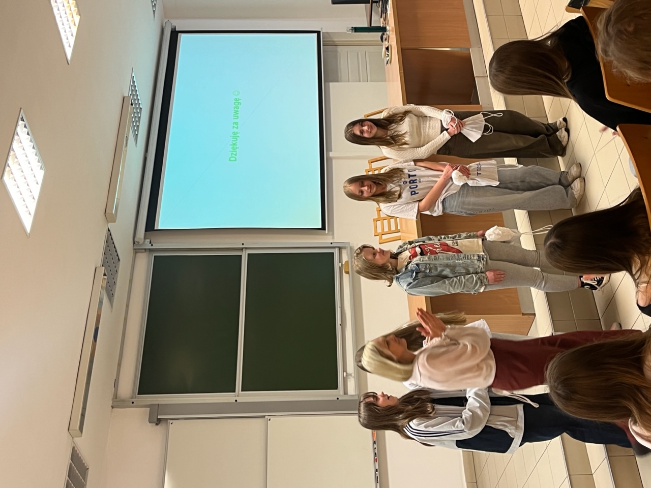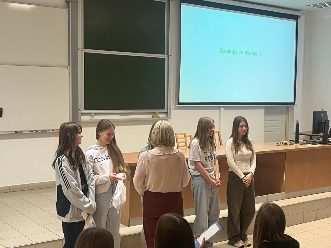 Podsumowaniem wykładu był wirtualny test sprawdzający ilość zapamiętanych przez uczniów informacji. Jedną ze zwyciężczyń została uczennica klasy VIII - Karolina Grzymek.