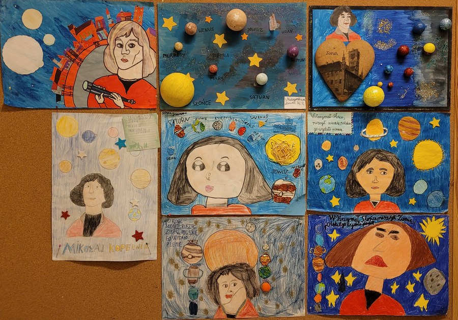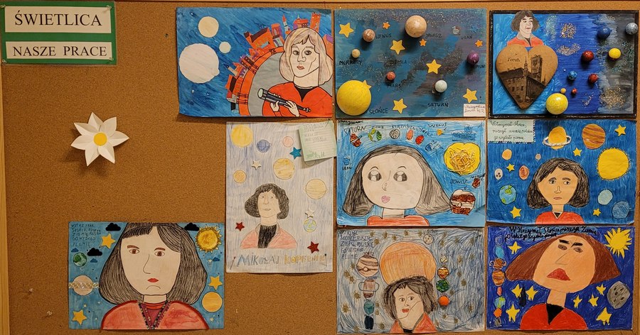 Dnia 16.04.2024 r. nastąpiło podsumowanie działań związanych z uczczeniem 550. rocznicy urodzin astronoma. Rozstrzygnięto Szkolny Konkurs Plastyczny pod hasłem „Wstrzymał Słońce, ruszył Ziemię…”, który miał na celu w sposób ciekawy i atrakcyjny dla dzieci przybliżyć postać Mikołaja Kopernika. Nasi uczniowie z kl. I - VIII przygotowali 34 piękne, pomysłowe i estetyczne prace w różnych technikach plastycznych.