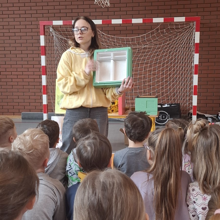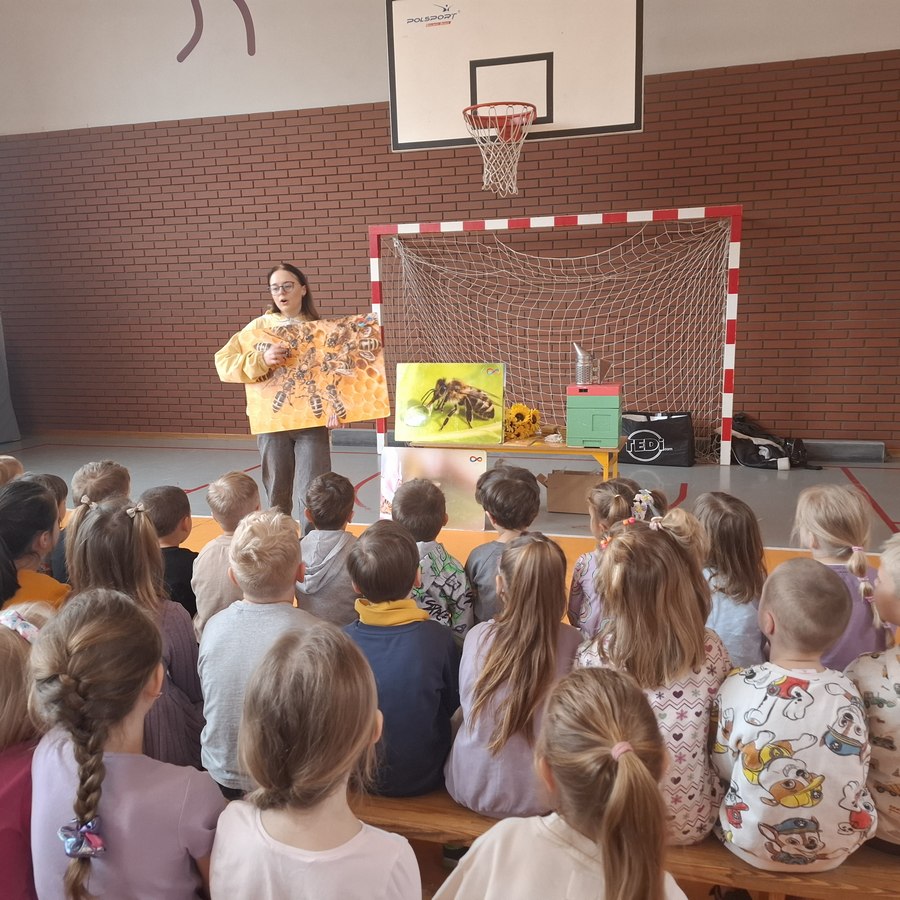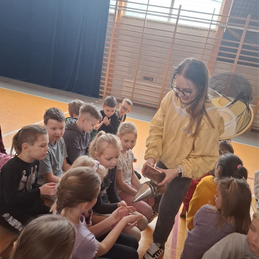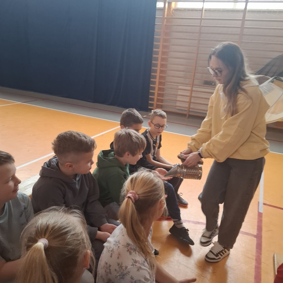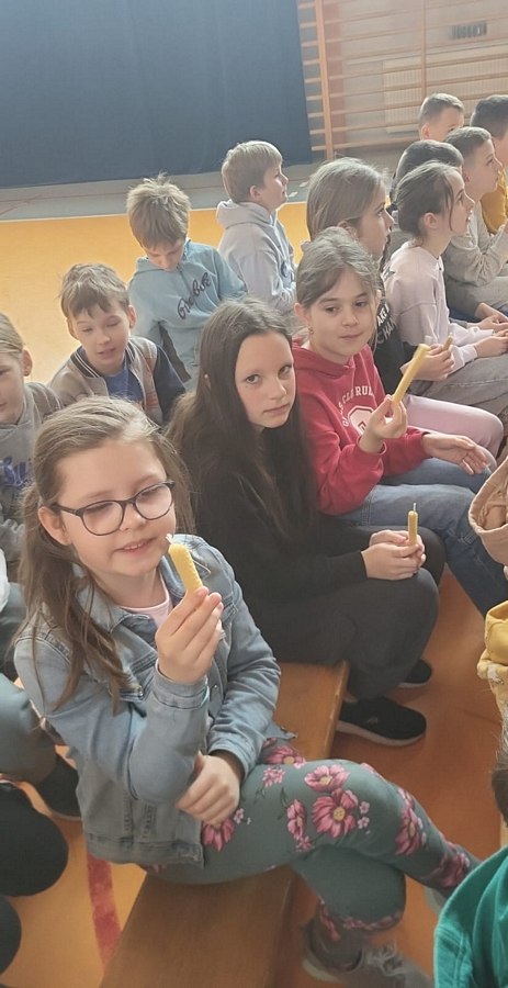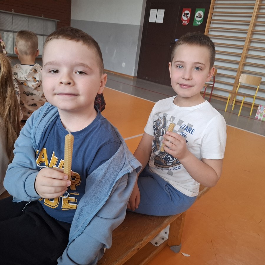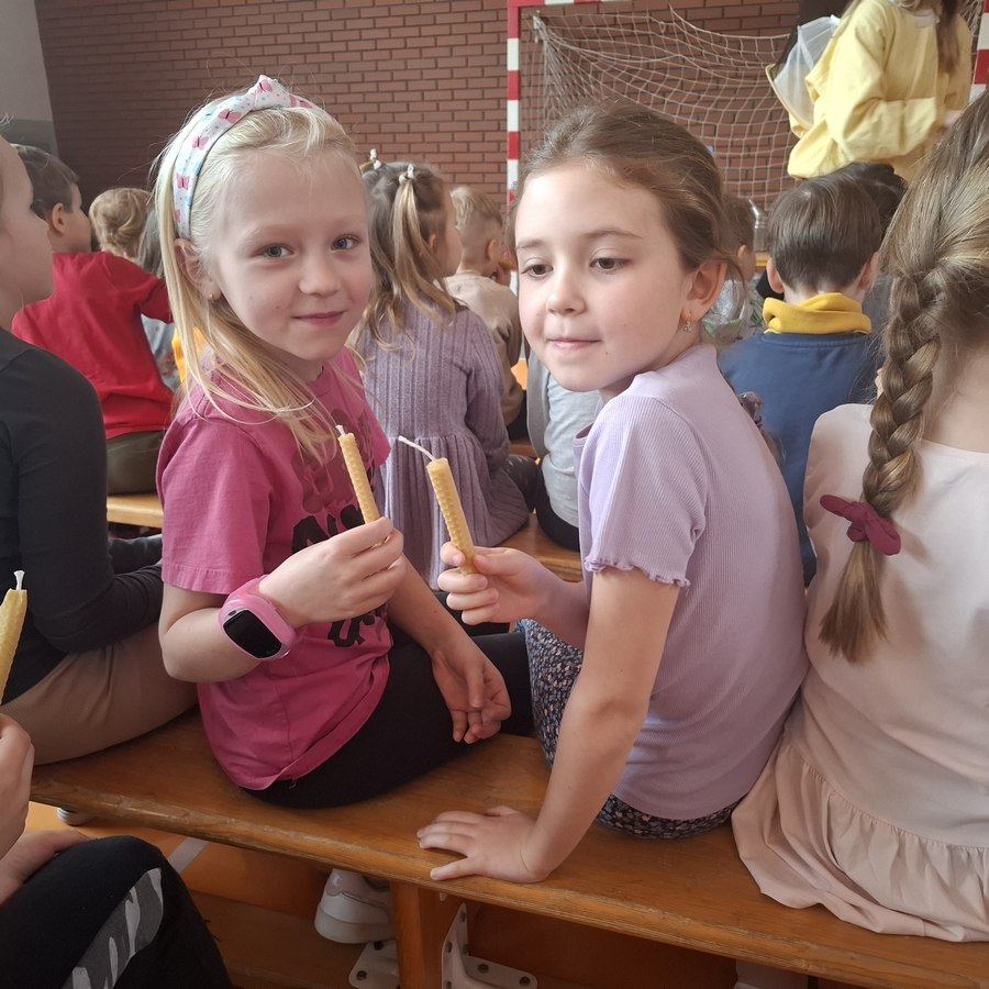 Dnia 25 marca 2025 r. w naszej szkole odbyły się warsztaty pszczelarskie, podczas których uczniowie poznali fascynujący świat pszczół i tajniki pracy pszczelarza. Dzieci z wielkim zaangażowaniem wykonywały świece z węzy pszczelej, a na zakończenie każdy uczestnik otrzymał słoiczek pysznego miodu oraz pamiątkowy dyplom. Niektórzy uczniowie, niczym prawdziwe niedźwiadki, w ciągu 15 minut opróżnili swoje słoiczki z miodem! To była nie tylko świetna zabawa, ale i prawdziwa lekcja przyrody, która pozwoliła dzieciom jeszcze lepiej zrozumieć rolę pszczół w ekosystemie.