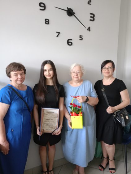 Szczególnym wyróżnieniem – stypendium ufundowanym przez rodzinę Juzów – została nagrodzona Lilianna Mróz, która osiągnęła najwyższą sumę wyników egzaminów w szkole. Nagrodę wręczyły Pani Izabella Golec- córka Justyna Juzy, jednego z Patronów naszej szkoły oraz Pani Monika Krzysztoforska.