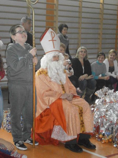 Jak co roku, tak i tym razem do naszej szkoły 6 grudnia 2013r., w piątek zawitał św. Mikołaj. Wszyscy mieli okazję zobaczyć Mikołaja na własne oczy. Jest to dobry znak świadczący o tym, że byliśmy grzeczni i zasłużyliśmy na podarki. Pani Dyrektor Bożena Świętek serdecznie powitała miłego Gościa. Uroczystość rozpoczęła się częścią artystyczną w wykonaniu dzieci klas 0-III pod kierunkiem P. Marioli Lipińskiej. Swoją radość i podziękowanie dzieci wyraziły poprzez wiersze, piosenki i taniec. Chłopiec z klasy IV-Adrian przebrany w mikołajkowy strój, asystował św. Mikołajowi. Mikołaj był oczarowany tak miłym powitaniem i występem dzieci, że w nagrodę rozdał wszystkim uczniom i pracownikom szkoły paczki z zabawkami, ze słodyczami i owocami cytrusowymi. Nikogo nie przeoczył. Przezacny Gość również został obdarowany przez dzieci, otrzymał skromny upominek-świąteczną bombkę. Mikołaj nie ukrywał wzruszenia. Z łezką w oku podziękował za tak wdzięczne przyjęcie, nieskrywany uśmiech i radość dzieci, a także zapowiedział, że na pewno wróci do naszej szkoły za rok i przywiezie cały worek prezentów dla grzecznych dzieci. A te, które już coś nabroiły, mają jeszcze szansę na poprawę.
