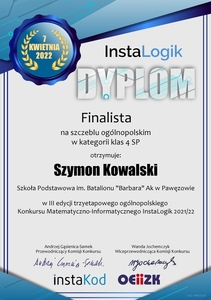 Uzyskany tytuł finalisty w ogólnopolskim...